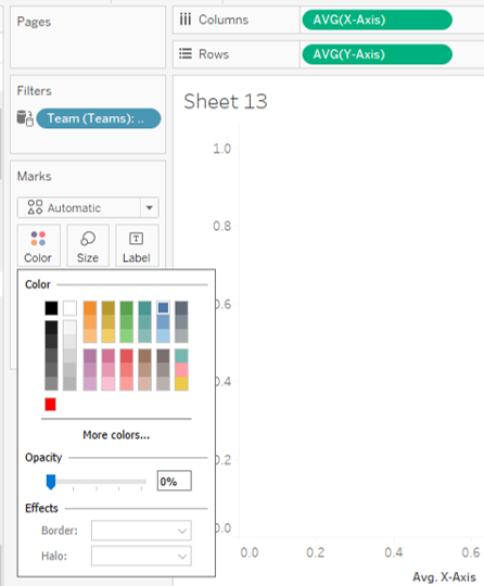 Next you’ll want to identify the field that will be tied to the filter. In this case, my field was ‘Team (Teams)’. Move that field both into the Filters, and drag it into the Detail button on the Marks card.